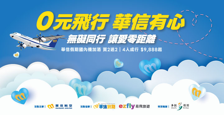 華信航空 無礙同行專案,憑1張身心障礙卡,可享1+3人愛心票價