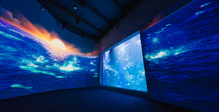 「從台中河川 流向世界之海」有別於傳統的水族缸展示,多元的參觀視角跟沉浸式的參觀體驗。透過多元的展示手法與互動式活動,重塑對水文生態的認知。在這裡,可以感受到自然的變化,潮汐與四季的變化;從山川至大洋,在地生態延伸至世界海洋